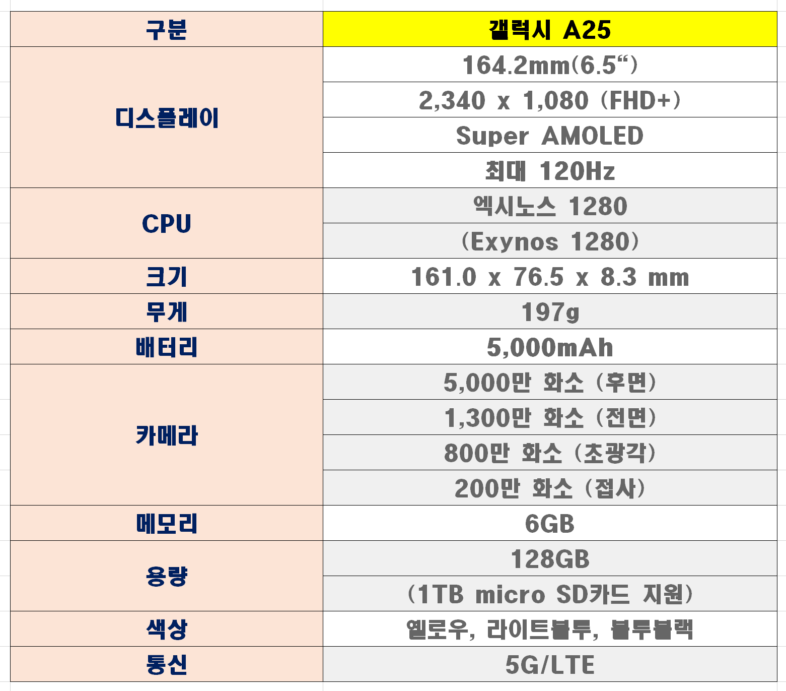 갤럭시 a25 스펙 - 요약